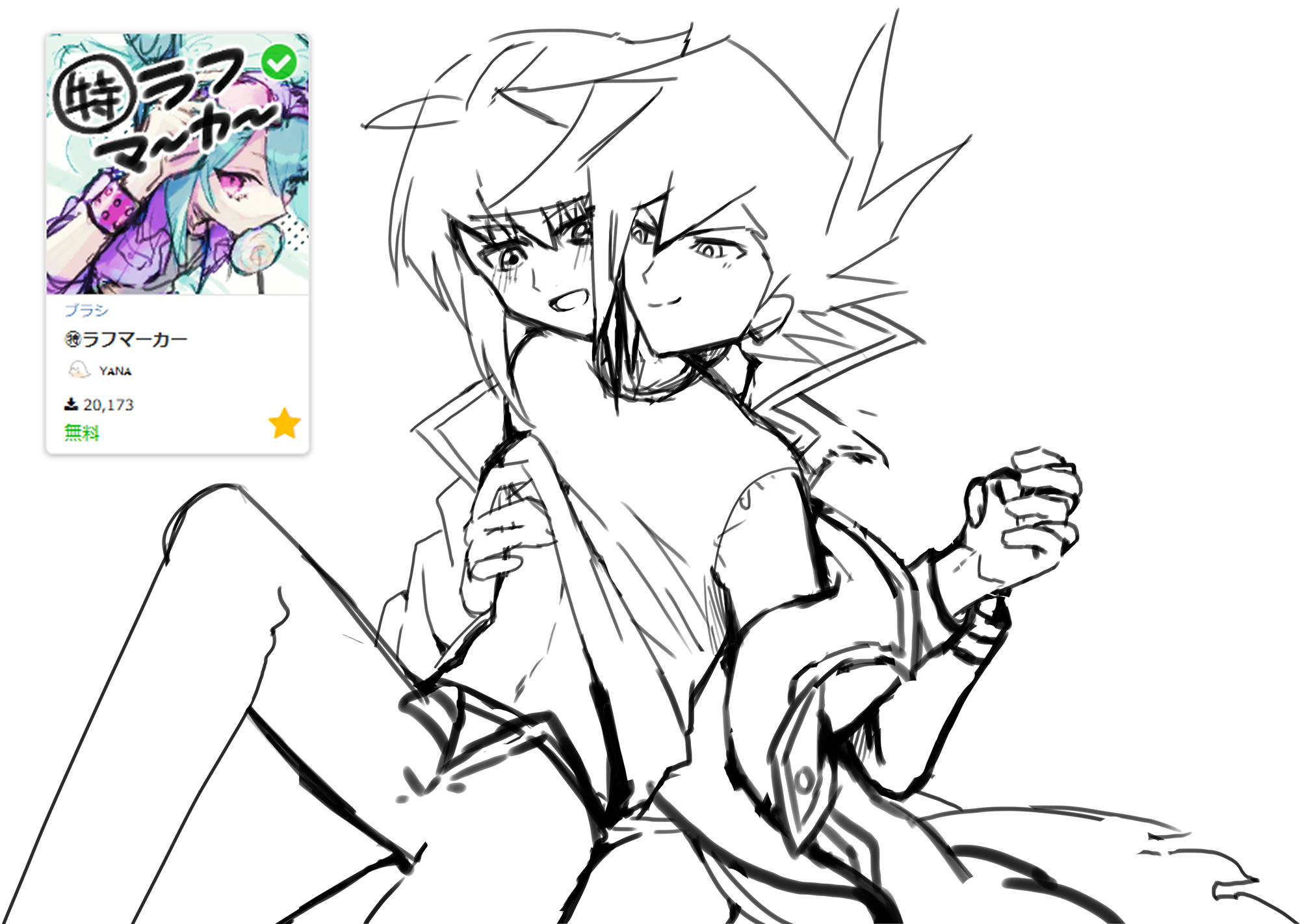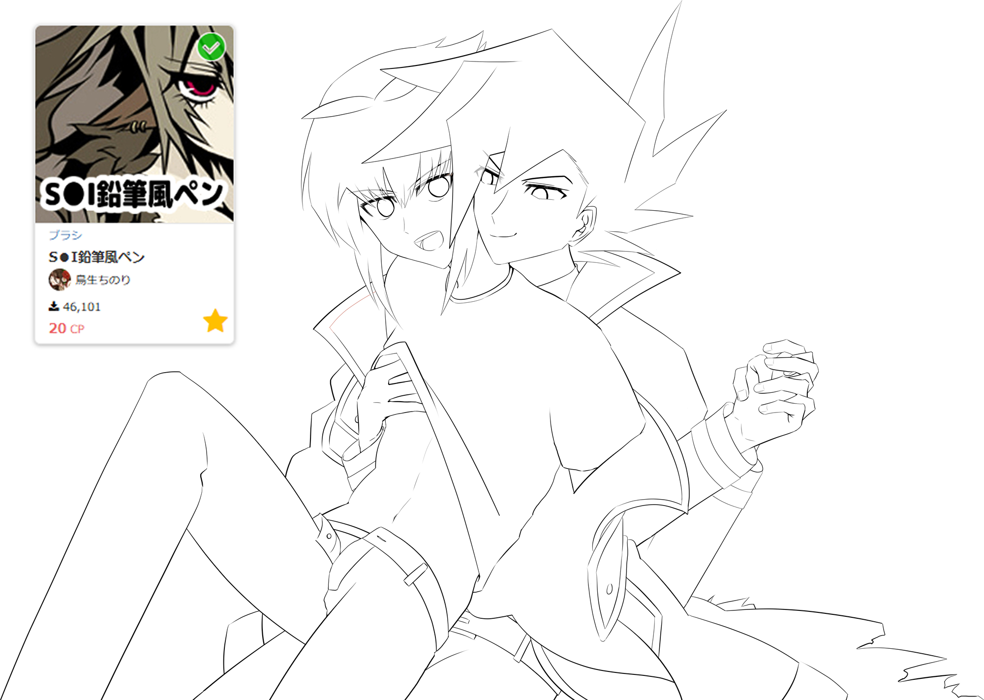 同人誌の表紙ということで「いちゃらぶでエッチ!」という曖昧な感じでひたすらぐりぐり。大雑把にアタリ描いてどんどん細かく清書していくイメージ。迷い線やザックリしたラフだと線画で苦労するからできるだけ形は整える。